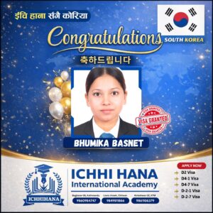 Heartiest congratulations to Ms. Bhumika Basnet on successfully receiving her South Korea visa! 🎓✈️
